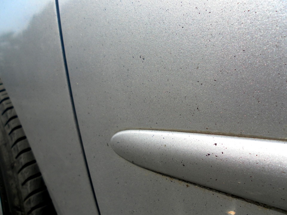 Тормозная пыль и другие металлические частицы, образующиеся в процессе эксплуатации автомобиля, могут оседать на кузове. Со временем они ржавеют и превращаются в черные точки, которые проникают в лакокрасочное покрытие.